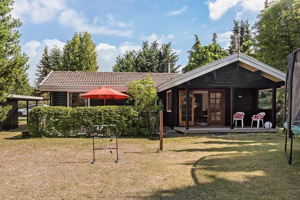 Das Sommerhaus liegt auf einem 1000 m2 großen Grundstück, mit einer schönen Rasenfläche, die zum Spielen und Austoben einlädt, außerdem gibt es ein Trampolin. Darüber hinaus bietet das Sommerhaus zwei schöne Terrassen: eine überdachte Terrasse und eine Terrasse mit Gartenmöbeln. In der Einfahrt gibt es einen Carport.