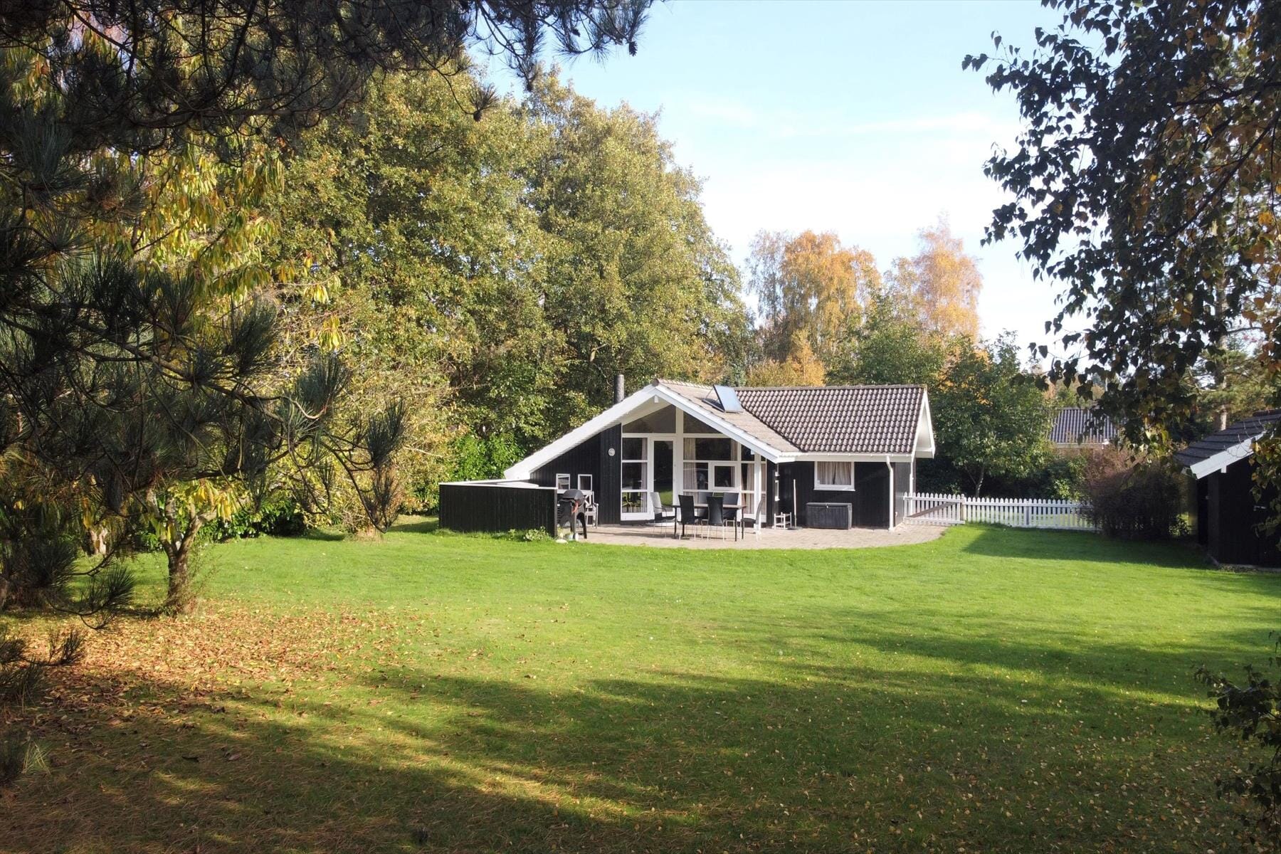 Das Ferienhaus liegt auf einem 1.304 qm großen Grundstück mit gemütlicher teilweise überdachter Terrasse und einer großen und schönen Liegewiese, die sich perfekt für Ballspiele und Aktivitäten mit der ganzen Familie eignet.