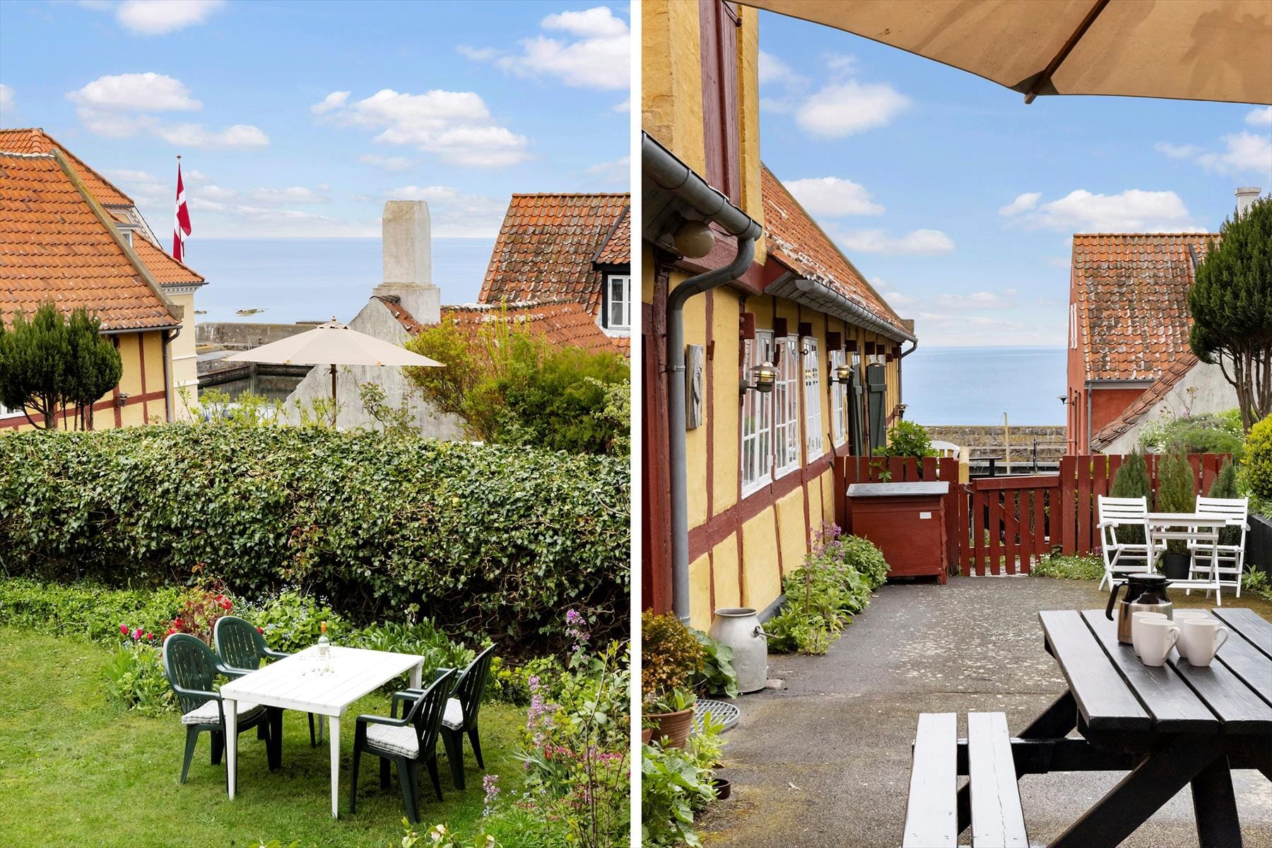 Das idyllische Fachwerkhaus wurde um 1800 erstellt und war einer der Handelshöfe der Stadt mit einem großen Lagerhaus und eigenen Schiffen im Hafen. Der Hof ist geschlossen und sonnig, die Felsen „Åsen“ geben Windschutz. Genießen Sie die Abendsonne vom Sitzplatz an der Felswand mit Blick auf die Stadt, den Hafen und die Ostsee. Die Morgensonne scheint auf die Sitzplätze an der Hausfassade, wo das Frühstück besonders gut schmeckt. Gartenmöbel laden zum Entspannen auf dem Rasen ein, es gibt Blumenbeete und vielleicht bereiten Sie ein paar köstliche Bornholmer Spezialitäten auf dem Grill zu.