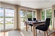 Das etwa 55 m² große Freizeithaus besticht durch seine exklusive Lage unmittelbar am See. Die nach Westen ausgerichtete Terrasse bietet einen tollen Blick auf den See und die auf der anderen Seeseite liegende Ortschaft Unnaryd. Das Haus selbst verfügt über ein Wohnzimmer mit Sitzgruppe, Couch und SAT-TV und hat darüber hinaus zwei Schlafzimmer, die jeweils mit 2 Einzelbetten ausgestattet sind. Die Küche, von der aus man in die beiden Schlafzimmer gelangt, ist mit Elektroherd, Dunstabzug, Mikrowelle sowie Kühlschrank mit Gefrierfach ausgestattet und hat auf der Seeseite eine gemütliche Essecke. Das Haus hat ferner fließend kaltes und warmes Wasser und kann elektrisch beheizt werden. Im Eingangsbereich, der auf der Landseite des Hauses liegt, befinden sich Garderobe sowie ein Duschbad mit WC. Den Gästen stehen außerdem Gartenmöbel und Grill sowie ein Ruderboot und ein Kanu zur Verfügung.