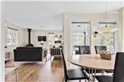 Das Haus bietet eine gemütliche Einrichtung, in der Wohnzimmer, Essbereich und Küche miteinander kombiniert sind. Es ist ein Kamin vorhanden, der in den kühlen Abendstunden angezündet werden kann. Durch eine französische Terrassentür gelangen Sie vom Wohnzimmer auf die Terrasse. Lassen Sie die Terrassentür offen stehen und lassen Sie die Düfte der Natur und die erholsamen Geräusche ins Haus. Das Ferienhaus eignet sich ideal für eine kleine Familie oder Freunde auf Reisen.