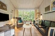 Das Ferienhaus ist hell, einladend und gemütlich. Der Wohnraum mit Essbereich und offener Küche bietet den gemütlichen Rahmen für das Beisammensein mit der Familie. Die Küche ist funktionell eingerichtet und liegt zwischen dem Wohnzimmer und den beiden Schlafzimmern. Vom Wohn-/Essbereich hast du Zugang zur teilweise überdachten und möblierten Terrasse. Das Haus hat zwei Schlafzimmer, eines mit zwei Einzelbetten und eines mit Etagenbetten. Das Badezimmer ist ausgestattet mit Toilette, Dusche und Waschmaschine.
