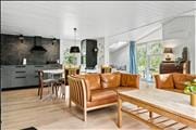 Das 104 m² große Ferienhaus liegt erhöht in der Landschaft und ist ausgestattet mit einem riesigen Panoramafenster, das viel Tageslicht in den Wohnraum läßt und beste Aussicht gewährt. Von der Küche, die offen mit dem Wohnraum verbunden ist, blicken Sie ebenfalls auf das Wasser und die hügelige Umgebung. Im Wohnraum sorgen ein Kaminofen und eine energiesparende Wärmepumpe für angenehme Temperaturen und Gemütlichkeit. Der große Flachbildfernseher mit Apple-TV bietet Möglichkeiten zum Streamen von Filmen und TV-Sendern. Im einem der beiden Badezimmer befinden sich Waschmaschine und Trockner, im zweiten Bad laden Whirlpool und Sauna zu Entspannung ein. Die Schlafplätze verteilen sich auf zwei Schlafräume. Einer der Räume ist ausgesprochen groß und gewährt einen schönen Blick in Richtung Wasser. Er ist ausgestattet mit Doppelbett und Schlafsofa, der andere hingegen mit einem Doppelbett (zwei zu einem Doppelbett zusammengeschobene Einzelbetten). Insgesamt stehen sechs Schlafplätze zur Verfügung.