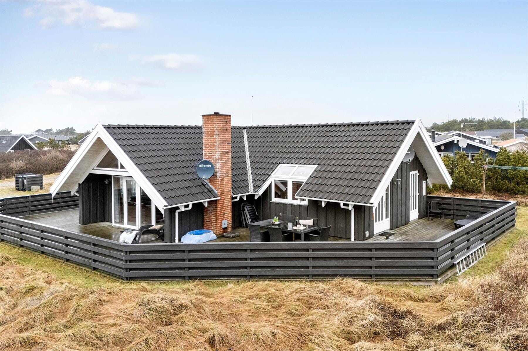 Treten Sie ein in die Gemütlichkeit und Ruhe dieses charmanten Ferienhauses, wo Materialien und Licht harmonisch zu einer warmen und behaglichen Atmosphäre verschmelzen. Zeitlose nordische Eleganz trifft hier auf modernen Komfort. Der offene Grundriss lädt zum geselligen Beisammensein ein, während das gemütliche Wohnzimmer mit Kaminofen und effizienter Heizung an kühlen Abenden für wohlige Wärme sorgt. Die gut ausgestattete Wohnküche bietet Platz für Familie und Freunde, und die funktionalen Schlafbereiche garantieren einen erholsamen Schlaf. Genießen Sie den weiten Blick durch die großen Fenster, die die Natur zum Greifen nah bringen, und öffnen Sie die Tür zur sonnigen Terrasse, wo Sie den Tag mit einer Tasse Kaffee beginnen oder mit einem Glas Wein ausklingen lassen können.
