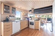 Die Räumlichkeiten bestechen mit klassischem Charme. Sie dürfen sich auf ein Urlaubsdomizil freuen, in dem große Fensterpartien einen natürlichen Tageslichteinfall und einen Ausblick auf attraktive Natur gewähren. Am schönsten geht es im Aufenthaltsbereich zu, der die Küche und den Wohnraum offen in sich vereint. In der geräumigen Küche können Sie zusammen die Mahlzeiten zubereiten. Den Abwasch übernimmt anschließend der Geschirrspüler. Das fertige Essen servieren Sie im Essbereich, in dem der Kaminofen und die freiliegenden Deckenbalken eine gemütliche Atmosphäre zaubern. Der Wohnraum umfasst eine gemütliche Polstersitzgruppe und verwöhnt mit einem Ausblick auf den Kirchturm der Kirche von Lyngvig und auf den Fjord. Während Ihres Frühstücks beobachten Sie spektakuläre Sonnenaufgänge über dem Fjord. Auf den Sofas schauen Sie in gemütlicher Runde einen Film im Fernsehen an oder lesen spannende Bücher. Der andere Bereich des Wohnraums eignet sich hervorragend für Brettspiele und andere Urlaubsaktivitäten. Die sechs vorhanden Schlafplätze verteilen sich auf drei Schlafzimmer. Beide Badezimmer sind neu aus dem Jahr 2023 und sind mit WC, Duschkabine und Waschbecken ausgestattet, das andere hat eine Dusche und ein WC.