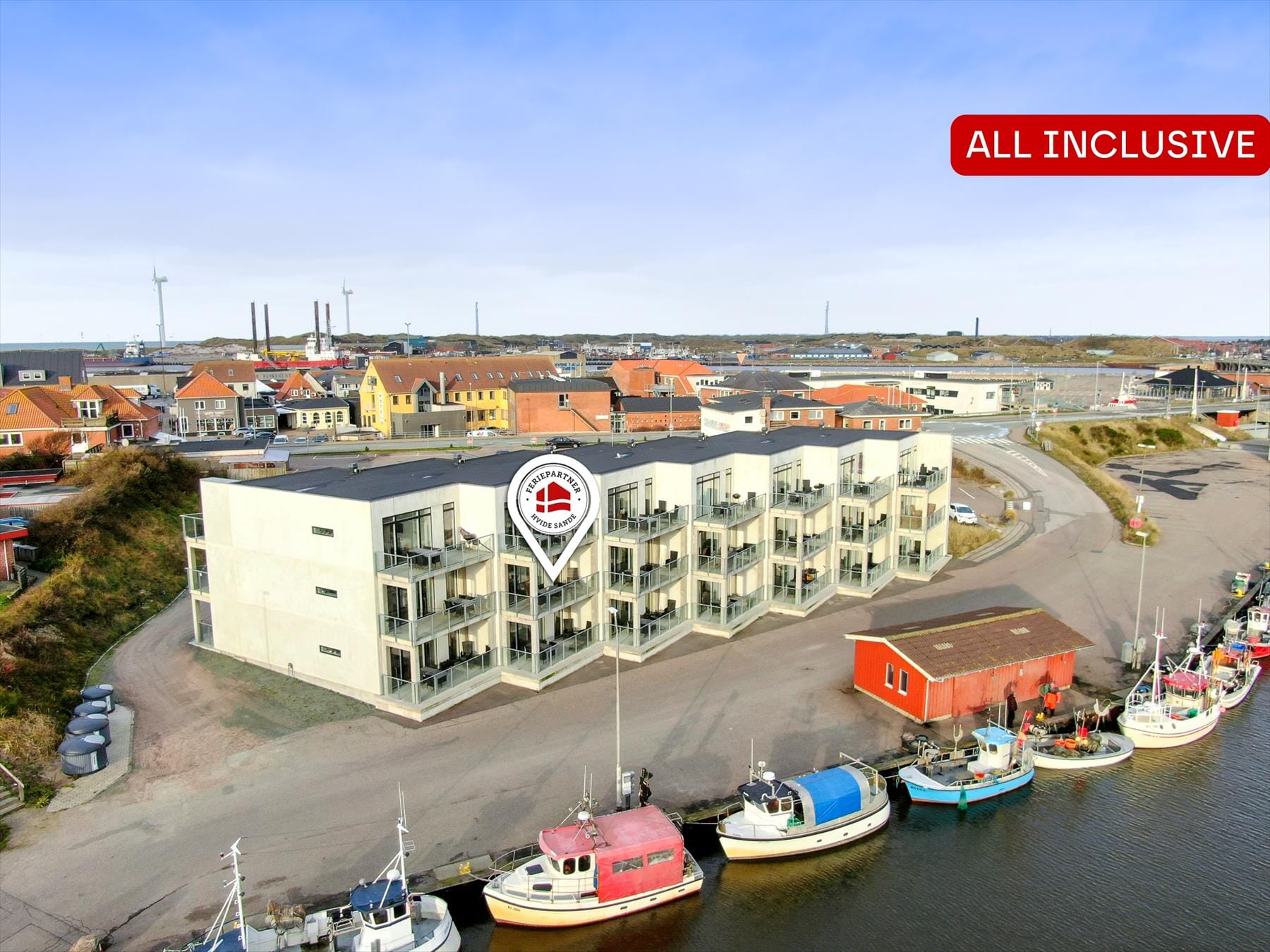 Ferienwohnung im Herzen Hvide Sandes mit guten Außenbereichen und Blick auf den Hafen