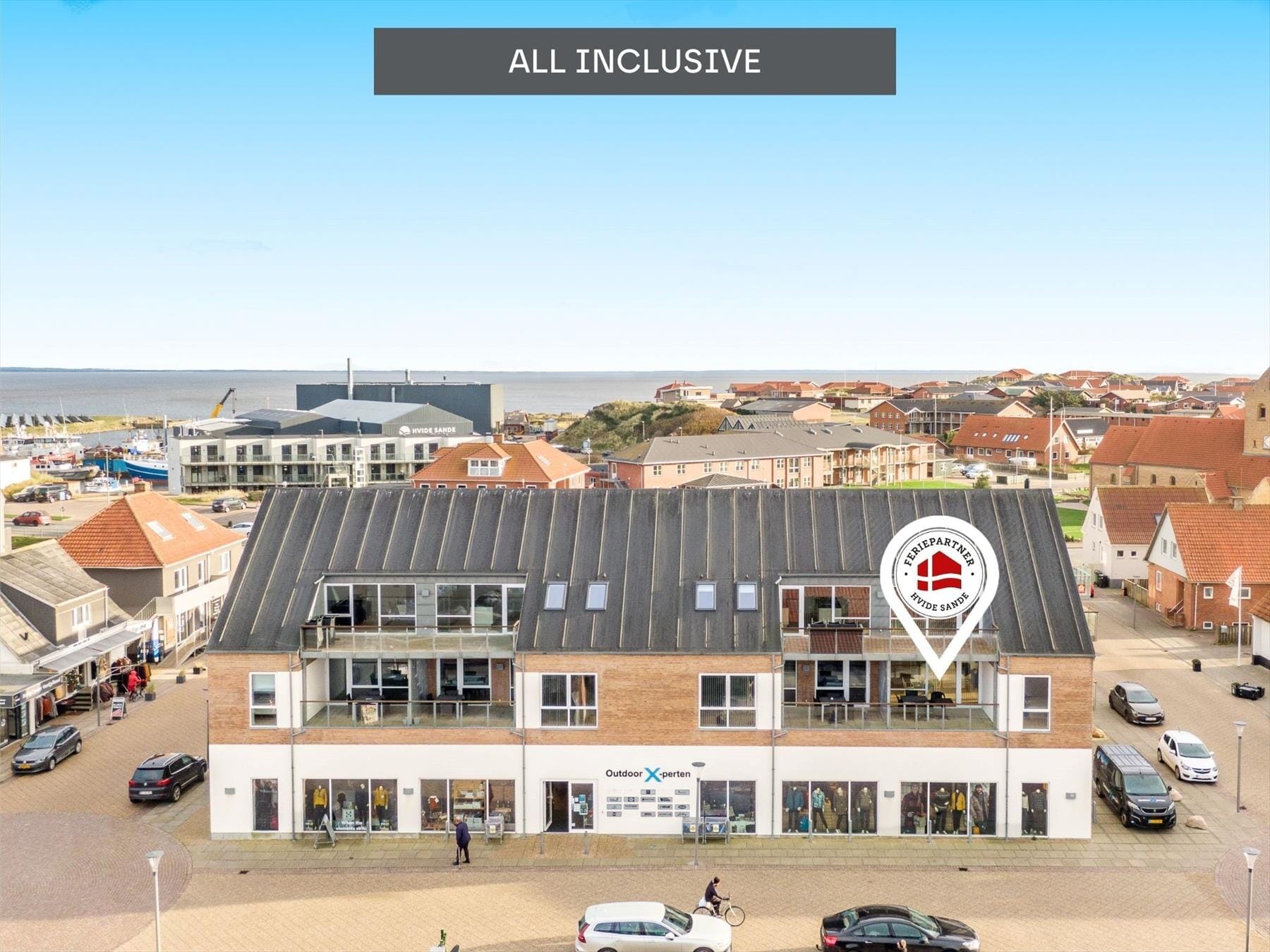 In den Straßen unterhalb Ihrer Ferienwohnung pulsiert in den Sommermonaten das Leben. Nur ein kurzer Spaziergang trennt Sie vom örtlichen Bäcker, vom nächstgelegenen Supermarkt und mehreren guten Fischgeschäften, die Frischfisch und Räucherfischspezialitäten anbieten. Falls Sie selber angeln möchten, suchen Sie die guten Angelplätze an der großen Schleuse auf, an der Sie hin und wieder mit Seehunden um den größten Fang buhlen. Angelmöglichkeiten bieten darüber hinaus das Meer, der Fjord und mehrere Angelseen. Nach wenigen Minuten erreichen Sie zu Fuß den Nordseebadestrand, der ebenso wie der Fjord, beste Bedingungen für Surfer, Kiter und andere Wassersportler bietet. Die Natur rund um Hvide Sande wird durch eine wirklich schöne, mit Heide bedeckte Dünenlandschaft geprägt. Diese erkunden Sie auch sehr gut mit dem Fahrrad - auf Wegen und Pfaden, die entlang Holmsland Klits Küste von Nymindegab im Süden bis Søndervig im Norden verlaufen.