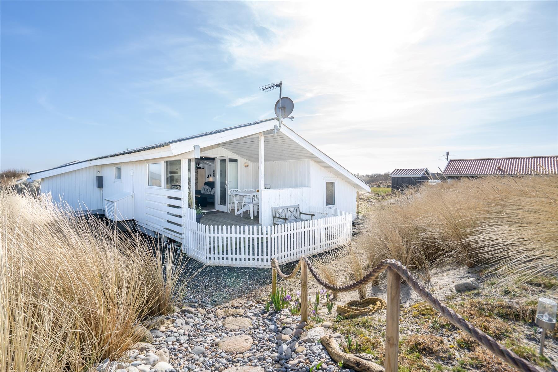 Durch die Lage im malerischen Argab haben Sie leichten Zugang zum Ringkøbing Fjord und zur Nordsee. Entlang des Fjords finden Sie viel Natur, während der lange, weiße Sandstrand an der Nordsee der Ort ist, an dem Sie an heißen Sommertagen ein kühlendes Bad nehmen oder frische Spaziergänge unternehmen können, wenn der Wind weht und das Meer seine Zähne zeigt. Auf dem Radweg kann man durch die hügelige Dünenlandschaft radeln, und die Dünen sind ideal zum Drachensteigen. Surfspots am Fjord und am Meer machen die Gegend um Hvide Sande zu einem Surferparadies, und auch Angler finden hier viele Angelseen und können an der Entwässerungsschleuse in Hvide Sande die Angel auswerfen. Die Stadt bietet außerdem Lebensmittelgeschäfte und ein aufregendes Geschäftsleben, und im Sommer pulsiert das Leben rund um den Hafen, wo Sie viele gute Restaurants und gute Fischhändler mit allem, was das Meer hergibt, finden.