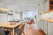 Die im "Tranum Klitgaard" gelegene Ferienwohnung wurde ansprechend modernisiert. Sie besticht mit einer hellen und einladenden Wohnatmosphäre und einem reizvollen nordischen Einrichtungsstil, der wunderbar mit den schönen Bodenfliesen und den weiß gestrichenen Steinwänden harmoniert. Das Erdgeschoss umfasst einen Aufenthaltsbereich, der sich aus dem Wohnraum und der offenen Küche zusammensetzt. Hier können Sie die Mahlzeiten zubereiten und dabei gleichzeitig angeregte Gespräche mit den Familienmitgliedern am Esstisch führen. Vom Sofa aus genießen Sie einen reizvollen Ausblick in die Natur. Ein Schlafraum mit einem Doppelbett und ein Badezimmer sind ebenfalls im Erdgeschoss platziert, im Obergeschoss dagegen zwei Schlafräume, von denen einer mit einem Doppelbett und der andere mit einem Etagenbett eingerichtet ist.