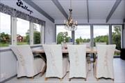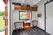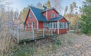 Das 1955 erbaute, durch Anbauten erweiterte, zweigeschossige Ferienhaus wurde zuletzt 2012 renoviert und hat eine Wohnfläche von etwa 58 m². Über einen seitlichen Anbau gelangt man in einen kleinen Flur und von dort in die moderne Küche, ausgestattet mit Kühl- und Gefrierschrank, Elektroherd mit Glaskeramikkochfeld und Backofen, Mikrowelle, Kaffeemaschine und Geschirrspüler. Ein gemütliches Wohnzimmer mit Sitzecke, Kaminofen und Fernseher (deutsche und schwedische Programme) schließt sich daran an. Auf der dem See zugewandten Hausseite wurde ein geräumiger Wintergarten angebaut, der als Esszimmer möbliert ist und von dem aus man einen schönen Blick auf den See hat. Außerdem hat das Haus im Erdgeschoss ein Duschbad mit Handwaschbecken, WC und Waschmaschine. Eine recht steile Treppe führt in das Obergeschoß mit zwei Schlafzimmern, von denen eines mit einem Doppelbett und zwei Einzelbetten möbliert ist. Ein weiteres Doppelbett befindet sich in dem zum Treppenhaus hin offenen Raum. Sechs weitere Betten befinden sich in zwei kleinen Gästehäuschen auf dem Grundstück: in einem der Häuser gibt es zwei Einzelbetten, das andere ist mit zwei Etagenbetten ausgestattet. Die Belegung des Hauses wurde vermieterseitig auf maximal acht Personen begrenzt. Den Gästen stehen außerdem eine große offene Veranda mit Gartenmöbeln, ein Ruderboot und ein Grill zur Verfügung - und im Garten gibt es ein Spielhaus für die Kinder.