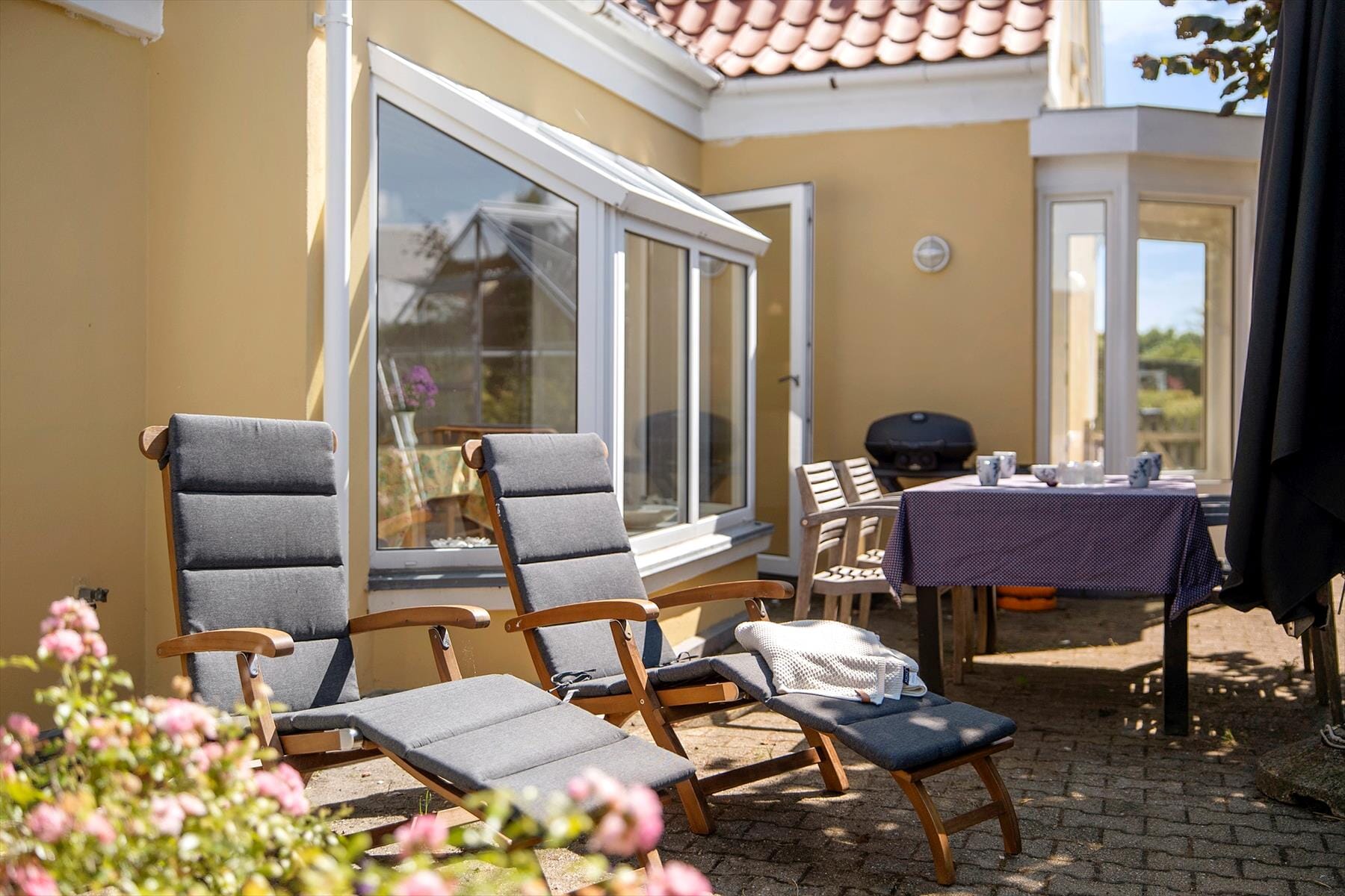 Das Ferienhaus verfügt über eine schöne Holzterrasse mit Meerblick, die als natürliche Erweiterung des Wohnzimmers dient. Hier können Sie Ihren Morgenkaffee genießen, während die Sonne langsam über dem Kattegat aufgeht, oder Ihr Abendessen mit nach draußen nehmen und den Grill für das Abendessen sorgen lassen. Die Terrasse ist mit bequemen Gartenmöbeln ausgestattet, sodass sowohl Kinder als auch Erwachsene sich entspannen können, während sie die Aussicht und die frische Seeluft genießen. Die ruhige Lage ermöglicht es Ihnen, die Zeit verstreichen zu lassen, während Sie dem leisen Rauschen der Wellen und dem Zwitschern der Vögel in der Nähe lauschen. Obwohl das Haus zentral in Øster Hurup liegt, spürt man deutlich, wie der freie und ruhige Außenbereich zu ungestörter Urlaubsidylle einlädt.