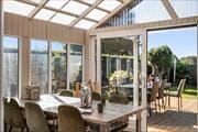 Das Ferienhaus ist ein klassisches dänisches Sommerhaus mit einer schwarz gestrichenen Holzfassade und weißen Fensterrahmen, und die charmante Atmosphäre setzt sich fort, wenn Sie eintreten. Es gibt ein herrliches Licht von den vielen Fensterpartien, und die weiß gestrichenen Wände und Decken tragen zur hellen und freundlichen Stimmung bei. Die Küche ist in den offenen Wohnbereich integriert, sodass Sie problemlos kochen können und dennoch an den Gesprächen am Tisch teilnehmen können. Das gemütliche Beisammensein kann auch in den angrenzenden Wintergarten verlegt werden, wo das Licht noch großzügiger ist – und von hier aus können Sie übrigens direkt in den Garten gehen. Das Haus enthält außerdem zwei Schlafzimmer und ein Badezimmer.