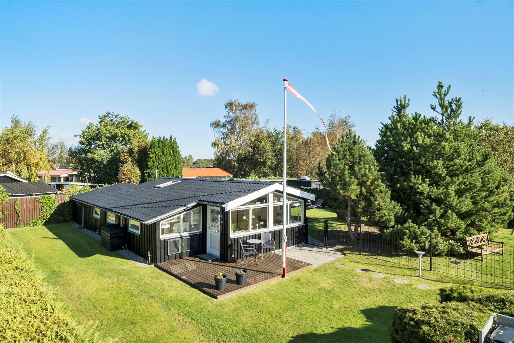 Der geschlossene Garten rund um das Ferienhaus ist ideal für sowohl Spiel als auch Entspannung für Groß und Klein. Hier können die Kinder sich auf den Schaukeln und im Sandkasten vergnügen, und du kannst den Familienhund sorgenfrei in der sicheren Umgebung frei herumlaufen lassen. Auf der Terrasse könnt ihr Mahlzeiten im Freien decken, und ein Grill steht bereit, um den Sommer mit schönen Grillerlebnissen zu bereichern. Die Bäume und Büsche im Garten bieten Privatsphäre und Schutz vor dem Wind, sodass ihr die Tage und die langen Sommerabende draußen genießen könnt – sei es mit einer Tasse Kaffee in der Sonne oder beim abendlichen Beisammensein am Grill in familiärer Gesellschaft.