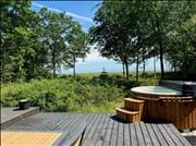 Der Außenbereich des Ferienhauses ist wie geschaffen zum Entspannen und Genießen. Die große Terrasse ist sowohl mit einem Essbereich als auch mit bequemen Loungemöbeln ausgestattet, von denen aus Sie die Aussicht auf das Kattegat genießen können. Die weitläufige Terrassenumgebung eignet sich hervorragend zum Sonnenbaden, Essen im Freien und für gemütliche Grillabende. Das absolute Highlight ist jedoch die Schwedische Badetonne, in dem Sie unter freiem Himmel entspannen und die Ruhe und die Aussicht auf die Natur genießen können. Das Gelände ist von einer üppigen Vegetation umgeben, die eine private Atmosphäre schafft, und mit Platz zum Spielen und Entspannen ist für jedes Alter etwas dabei.