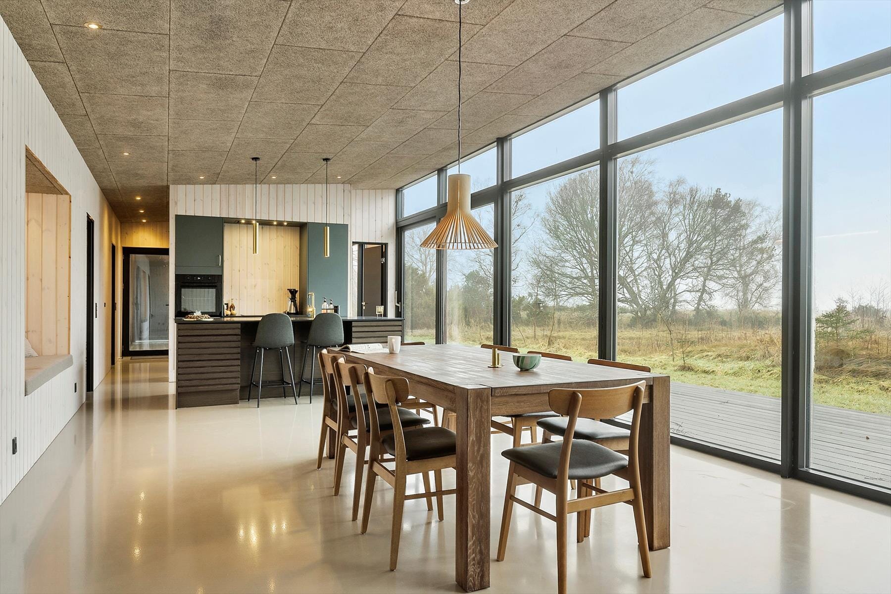 Das Cottage ist mit Stil und Sorgfalt eingerichtet und sobald Sie es betreten, spüren Sie die einladende Atmosphäre. Helle Farben, hochwertige Materialien und moderne Möbel schaffen eine ruhige und harmonische Atmosphäre, in der Sie sich sofort wohlfühlen. Das große Wohnzimmer dient als natürlicher Treffpunkt des Hauses und verfügt über eine offene Küche und einen gemütlichen Essbereich, wo Sie Ihre Mahlzeiten mit Blick auf die umliegende Natur genießen können. In der Sitzecke können Sie mit einem guten Buch in einem weichen Sessel versinken oder bei einer Tasse Kaffee den Blick über die Landschaft genießen. Ein cleveres Detail des Hauses ist der separate Schlafbereich, der gemeinsam reisenden Familien oder Paaren zusätzliche Privatsphäre bietet. Hier finden Sie geräumige Schlafzimmer und ein Badezimmer, sodass sich jeder nach einem Tag voller Abenteuer in seine eigene ruhige Ecke zurückziehen kann.