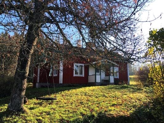 Das liebevoll renovierte Haus hat eine Wohnfläche von ca. 100 m² und bietet Platz für bis zu 8 Personen. Das ehemalige Soldattorp betritt man über einen offenen Windfang und gelangt so in den Flur. Links gelangt man in das erste Schlafzimmer, das mit zwei Einzelbetten (90 x 200 cm), die zusammengeschoben werden können, einer Kommode und einem Kachelofen ausgestattet ist. Vom Flur nach rechts gelangt man in einen offenen Wohn-Essbereich. Hier befinden sich ein Sofa, zwei Schaukelstühle, ein Spieltisch für Kinder und ein großes Bücherregal, das von den Gästen benutzt werden darf, außerdem ein Tagesbett (90x200 cm). Aus beiden Zimmern gelangt man in die 2013 komplett renovierte, große Wohnküche. Sie ist ausgestattet mit einer Kühl-Gefrierkombi, einem Elektroherd mit Backofen, Toaster, Kaffeemaschine und Wasserkocher. Durch einen weiteren Flur gelangt man von der Küche ins Vollbad, das zusätzlich mit einer Waschmaschine ausgestattet ist und ins ausgebaute Obergeschoss. Hier befinden sich eine Schlafkoje (90x200 cm), ein offener Schlafboden (160x200 cm) und ein weiteres Schlafzimmer mit Doppelbett (180x200 cm). Das Haus hat fließend kaltes und warmes Wasser und kann elektrisch sowie mit Holz beheizt werden. Den Gästen stehen außerdem 4 Fahrräder, ein Ruderboot, Grill und Outdoorspielsachen zur Verfügung.