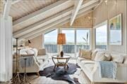 Bei einem Urlaub an der Westküste kannst du der Küste kaum näher kommen, als bei diesem Ferienhaus mit der Adresse Maivej 8 am Nørlev Strand. Das geräumige Holzferienhaus liegt in der ersten Häuserreihe vor der mächtigen Nordsee. Aufenthaltsbereich und Terrasse verzaubern daher mit freiem Ausblick auf die blauen Wellen und die reizvolle Küstenlinie.