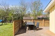Der große Außenbereich rund um das Ferienhaus lädt zu zahlreichen Aktivitäten im Freien und zur Entspannung ein. Die Terrasse ist perfekt für den Morgenkaffee oder einen gemütlichen Grillabend, und dank der teilweise überdachten Fläche könnt ihr das Leben draußen genießen, auch wenn das Wetter nicht immer von seiner besten Seite ist. Die Kinder werden den Garten lieben, wo sie auf der Schaukel spielen, die Rutsche hinuntersausen oder Sandburgen im Sandkasten bauen können. Während die Kleinen sich austoben, könnt ihr das Lagerfeuer entzünden und Marshmallows rösten oder Stockbrot backen – ein Erlebnis, das garantiert unvergessliche Ferienerinnerungen schafft.