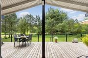 Die Holzterrasse ist das Herzstück des Ferienhauses, wenn das Wetter mitspielt. Hier kannst du deinen Morgenkaffee mit Blick auf den grünen Rasen genießen, auf dem sowohl Kinder als auch Erwachsene ausreichend Platz für Spiel und Spaß haben. Eine Treppe führt von der Terrasse in den Garten, wo du Badminton, Fußball spielen oder einfach in der Sonne entspannen kannst. Vogelgezwitscher und der Duft von Blumen schaffen eine wunderbare Kulisse für deine Outdoor-Aktivitäten. Die Terrasse ist auch ideal für Grillabende, bei denen ihr Speisen und Getränke unter freiem Himmel genießen und den Tag mit dem Sonnenuntergang ausklingen lassen könnt.