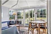Wohnraum und Küche verwöhnen mit einem direkten Zugang zum Terrassenareal, das an die Südseite des Hauses schließt. Auf dieser Terrasse werden Ihre Sinne angesprochen. Sie lauschen den zwitschernden Vögeln in den Baumwipfeln, riechen die duftenden Heckenrosen und spüren die schwache Limfjordbrise und die Sonne auf der Haut. Der Aussichtsplatz eröffnet einen herrlichen Blick über die Küste und das Wasser. Gartenmöbel, Liegestühle, ein Sonnenschirm und ein Grill sind vorhanden und laden zu zahllosen erholsamen Stunden in bezaubernder Umgebung ein.