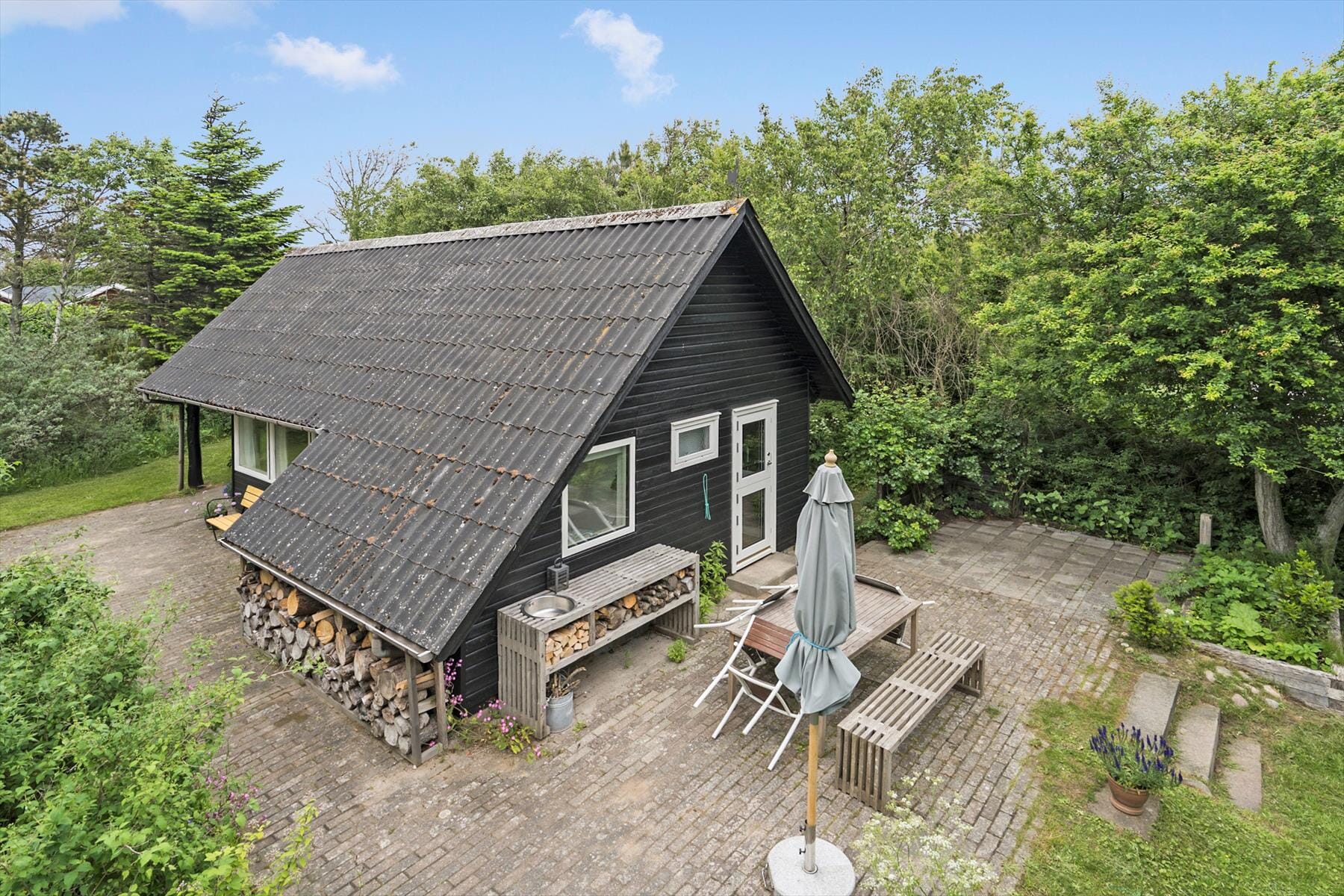 Der große Garten des Ferienhauses lädt zum Verweilen und Spielen ein. Die Kinder können auf dem Trampolin springen, während du dich mit einem guten Buch auf der Terrasse entspannst. Von hier aus kannst du das Meer in der Ferne erahnen und die frische Meeresbrise genießen. Die Terrasse ist der perfekte Ort, um gemeinsam mit der Familie im Freien zu essen und den Tag bei einem gemütlichen Grillabend ausklingen zu lassen.