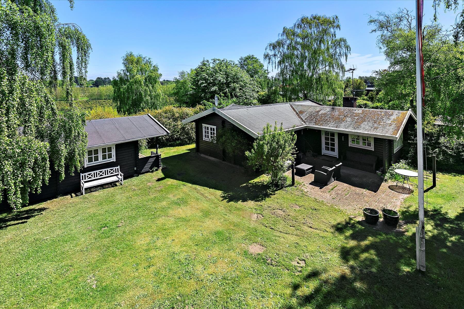 Der Garten ist ein kleines Paradies, in dem du von morgens bis abends die Sonne genießen kannst. Mehrere gemütliche Sitzplätze bieten die Möglichkeit, je nach Tageszeit zwischen Sonne und Schatten zu wechseln. Am unteren Ende des Gartens gibt es eine Schaukel und ein Spielhaus für die Kinder, während sich die Erwachsenen um die Feuerstelle versammeln können, um Stockbrot zu backen und Geschichten unter dem Sternenhimmel zu erzählen. Die große Terrasse, die das Wohnzimmer und die Küche mit dem Garten verbindet, lädt zu Mahlzeiten im Freien und langen Sommerabenden in der warmen Brise ein.