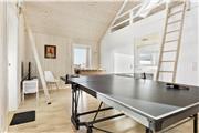 Das Ferienhaus wurde 2015 erbaut und präsentiert sich hell und modern mit Fokus auf gemeinsames Beisammensein. Das offene Wohn- und Küchenareal ist ein natürlicher Treffpunkt, an dem ihr kochen, spielen oder gemütlich einen Film schauen könnt, während ihr die Erlebnisse des Tages Revue passieren lasst. Vom Aktivitätsraum führt eine Leiter hinauf zu einer besonderen „Aussichts-Hems“, wo ein gemütliches Sofa zum Entspannen einlädt – und durch das Fenster habt ihr einen herrlichen Blick über die Landschaft. Soll der Urlaub mit ein wenig extra Verwöhnung gewürzt werden, findet ihr sowohl Whirlpool als auch Sauna im einen Badezimmer, wo ihr nach einem Tag am Meer zur Ruhe kommen könnt. Für die aktiveren Gäste gibt es einen Aktivitätsraum mit Tischtennis und Tischfußball, wo der Wettbewerbsgeist frei entfaltet werden darf.