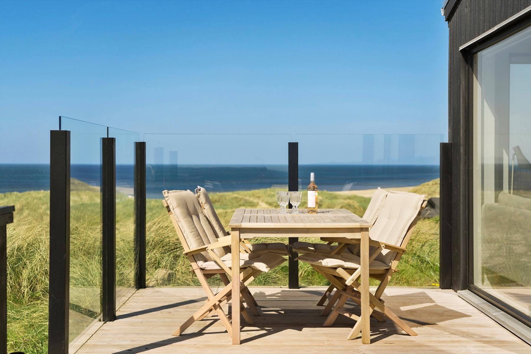 Haus-ID: LK1909Ihr habt freien Blick auf das Nordsee, wenn ihr euren Urlaub in diesem hellen, stilvollen und modernen Ferienhaus in der Annavej 10 verbringt. Das Haus befindet sich ganz oben auf den Dünen südlich von Løkken, und von sowohl dem Haus als auch den Terrassen habt ihr den Genuss des schönsten Panoramablicks auf das Wasser, den Strand und die wellige Küstenlandschaft. Hier könnt ihr sowohl den Sonnenaufgang als auch den Sonnenuntergang genießen.