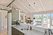 Das Ferienhaus wurde gründlich renoviert, sodass alle Räume schön und gepflegt wirken. Die Farbtonen sind hell, und im Wohnbereich gibt es eine Decke bis zum Giebel, große Fenster und eine offene Verbindung zwischen Küche und Wohnzimmer, was alles zu einem großartigen Raumgefühl beiträgt. An einem kühlen Tag können Sie den Kamin anzünden, während Sie in der Küche kochen oder sich auf der Couch entspannen. Wenn Sie wirklich abschalten und sich aufwärmen möchten, ist ein warmes Bad im Whirlpool und ein Saunabesuch eine wahre Freude. Beides ist im großen Badezimmer möglich, das auch mit einer Dusche ausgestattet ist, während die Waschmaschine und der Trockner im Eingangsbereich stehen. Es gibt drei Schlafzimmer, die alle mit guten Doppelbetten und Kleiderschränken ausgestattet sind.