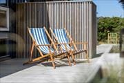 Die Außenbereiche des Ferienhauses sind mindestens genauso schön. Geschützte Terrassen umgeben das Haus, und es gibt sowohl offene als auch überdachte Bereiche zur Auswahl. Nach einem Strandbesuch könnt ihr Sand und Salzwasser einfach unter der Außendusche abspülen, bevor ihr Krocket spielt oder euch in den Liegestühlen entspannt. Später am Tag könnt ihr euch vielleicht am Lagerfeuer versammeln, und wenn ihr im Freien übernachten möchtet, findet ihr im Gartenshelter einen bequemen Platz. Im Außenbereich gibt es auch eine Ladestation für Elektroautos, die während eures Aufenthalts genutzt werden kann.