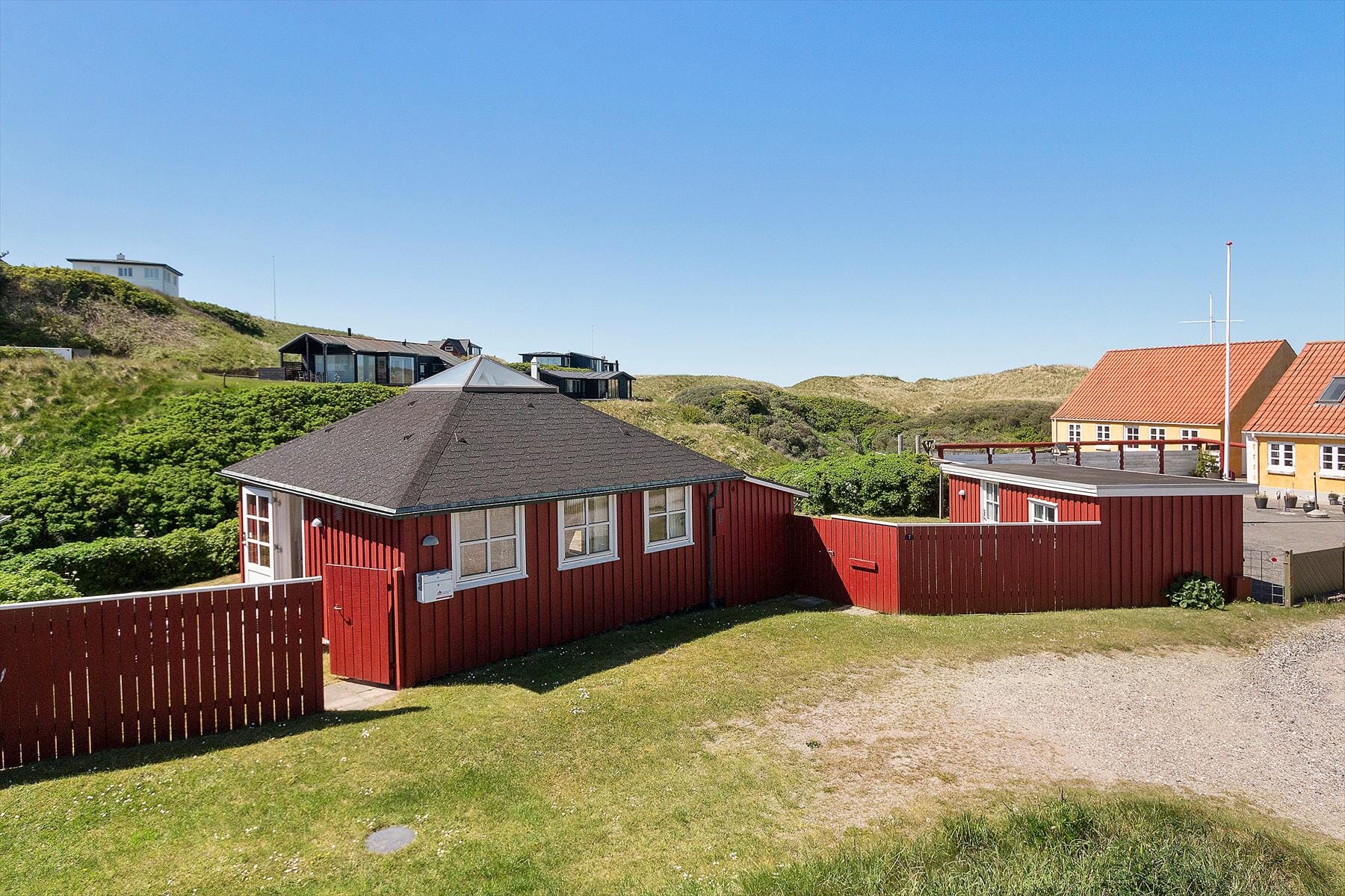 Das Ferienhaus liegt auf einem eingezäunten Gartengrund. Hier ist Platz zum Spiel mit oder ohne Ball vorhanden und hier sind Sie ungestört. Das Grundstück ist umgeben von Hagebuttenbüschen, die vor dem Westwind schützen. Die vielen guten Terrassen, die das Haus umgeben, bieten Windschutz und Möglichkeiten die Sonne zu genießen.
