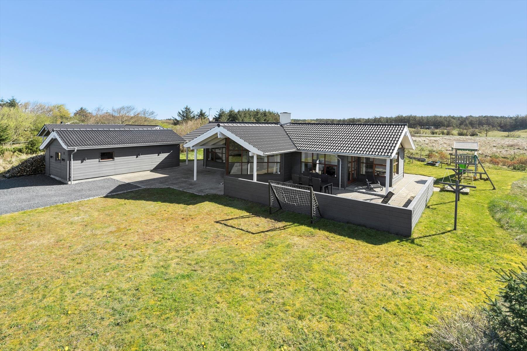 Auf dem 1.326 m² großen Naturgrundstück fühlen sich Groß und Klein gleichermaßen wohl. Ihre Kinder dürfen sich auf eine Sandkiste und auf ein Spielgerüst mit Schaukeln und einer Rutsche freuen. Die Grasfläche animiert Ihre gesamte Familie zum Ballspielen und zu verschiedensten anderen Outdoor-Aktivitäten. Rund um das Haus erstreckt sich ein schönes Terrassenareal, auf dem Sie zu jeder Zeit ein sonniges und auf Wunsch auch schattiges Plätzchen finden werden.
