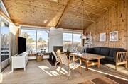 In der Lillehundsvej 12 in Skallerup Klit erwartet Sie ein Ferienhaus in besonders schöner Lage. Das Haus liegt erhöht in der beeindruckenden Dünenlandschaft und bietet einen fantastischen Panoramablick auf die Nordsee. An klaren Tagen reicht der Blick entlang der Küste vom Leuchtturm von Hirtshals im Norden bis zur Rubjerg Knude im Süden – ein Ausblick, der dem Urlaub einen ganz besonderen Rahmen verleiht. Hier wohnen Sie in einem Ferienhaus mit Geschichte und Seele, das im Laufe der Jahre modernisiert wurde und heute hell, einladend und funktional erscheint.