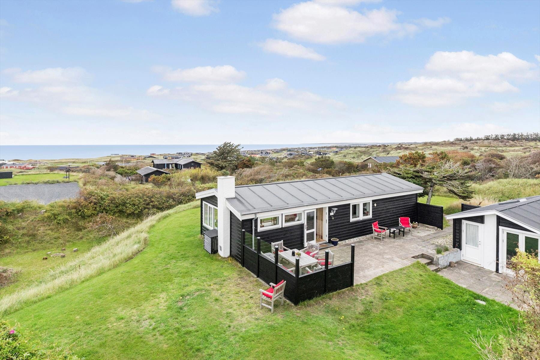 Das Ferienhaus liegt auf einem hügeligen Naturgrundstück. Das Grundstück besteht aus zwei Ebenen und es gibt viel Platz zum (Fußball)Spielen. Große Terrasse mit windgeschützten Bereichen zwischen dem Haus und dem Schuppen. Lønstrup und der Strand sind zu Fuß gut zu erreichen.