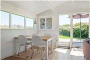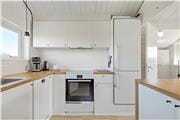 Mit seinen weiß gestrichenen Holzwänden, den hohen Decken und dem romantisch knisternden Kaminofen verströmt dieses Urlaubsdomizil eine ganz wunderschöne, reizvolle Ferienhausstimmung. Im Aufenthaltsbereich, der sich offen aus der Küche und dem Wohnraum zusammensetzt, werden Sie viel wertvolle Zeit im Kreise Ihrer Lieben verbringen und gemeinsam die Mahlzeiten zubereiten, sich auf dem Sofa entspannen oder auch vergnügliche Brettspiele am Esstisch spielen. Wenn Sie nach einem langen Urlaubstag die Sehnsucht nach einem guten Bett überkommt, ziehen Sie sich einfach in die beiden Schlafräume zurück, die beide mit je einem Doppelbett eingerichtet sind. Ein Badezimmer und ein Durchgangsraum mit einer Waschmaschine gehören ebenfalls zur Wohnfläche dieses ganz bezaubernden Ferienhauses.
