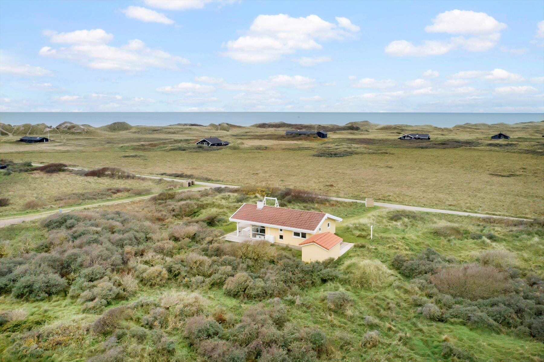 Rund ums Ferienhaus begrüßen dich auf den Terrassen mehrere schöne, sonnenverwöhnte Eckchen und Aufenthaltsplätze. Zu jeder Tageszeit findest du einen für dich passenden Platz zum Entspannen. Das Naturgrundstück bildet einen schönen, friedvollen Rahmen. Gen Norden erstreckt sich die offene Küstenlandschaft. Lass deinen Blick wandern und deinen Gedanken freien Lauf, während du die Sonnenstrahlen und die frische, salzige Seeluft genießt. Während deine Kinder vergnügt auf dem Grundstück umhertollen oder schaukeln, bereitest du auf dem Grill ein köstliches Abendessen zu. Nach dem Essen genießt ihr gemeinsam den hübschen Sonnenuntergang über den Dünen. Vielleicht habt ihr sogar Lust, an den Strand zu spazieren und dort den Sonnenuntergang aus der ersten Reihe zu bewundern.