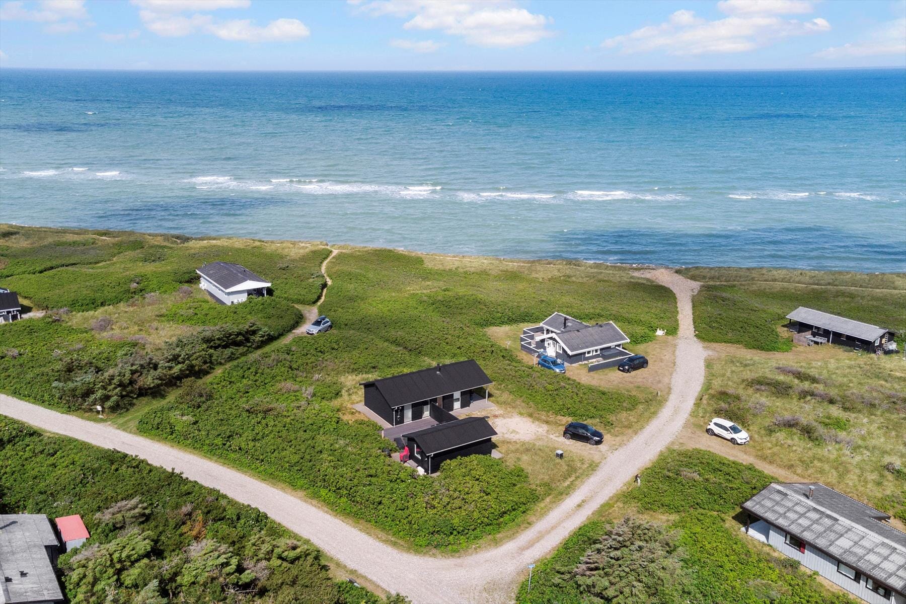 Das im Jahr 2013 erbaute Mietobjekt besticht mit großen, gen Westen gewandten Fensterpartien, die im Wohnraum eine fantastische Aussicht über Heckenrosen und das blaue Meer gewähren. Wenn Sie die Terrassentüren weit aufstellen, genießen Sie die frische, salzige Seeluft. An kühlen Tagen heizen Sie den stimmungsvollen Einbaukaminofen an und erfreuen sich an der Fußbodenheizung, die das gesamte Haus aufwärmt. Insgesamt wirkt das Urlaubsdomizil angenehm hell und stilvoll und weiß darüber hinaus mit zahlreichen guten Details zu überzeugen. Die hohen Decken sind beispielsweise mit geräuschhemmenden Akustikdecken versehen und in den Wohnraum ist eine offene Küche integriert, die einen tollen Rahmen für die Zubereitung Ihrer täglichen Mahlzeiten bietet. Ihr Duschbad am Morgen genießen Sie entweder im ausgesprochen schönen Badezimmer oder unter der Außendusche. Mit zwei Schlafzimmern und einem Nebengebäude beherbergt dieses Ferienhaus sechs Personen.