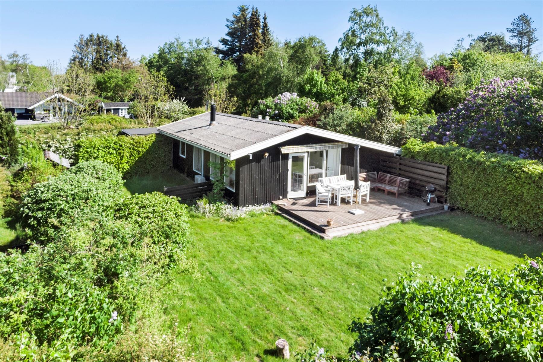 Auf der großen Terrasse können Sie Ihren Morgenkaffee genießen, an der frischen Luft zu Abend essen oder einfach die Seele baumeln lassen und die Ruhe des Urlaubs genießen. Das großzügige Grundstück bietet viel Platz zum Spielen und Entspannen. Nach einem Strandbesuch ist es herrlich, sich unter der warmen Außendusche den Sand abzuspülen. Ihr Auto können Sie im Carport direkt neben dem Haus parken. Vom Haus aus sind es nur etwa 250 Meter zum Strand von Råbylille, sodass Sie mehrmals täglich bequem ins Wasser gehen können.