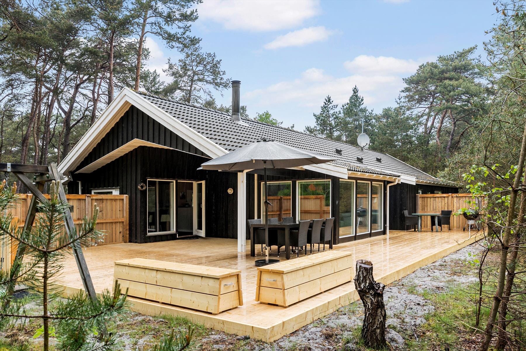 In Dueodde ist die Bebauung der Ferienhäuser nicht so dicht. Es gibt ausreichend Platz hier. Das Naturgrundstück misst insgesamt 2.650 m². Große, teilweise überdachte Terrasse mit Platz für viele Personen. In der Einfahrt können mehrere Autos parken.