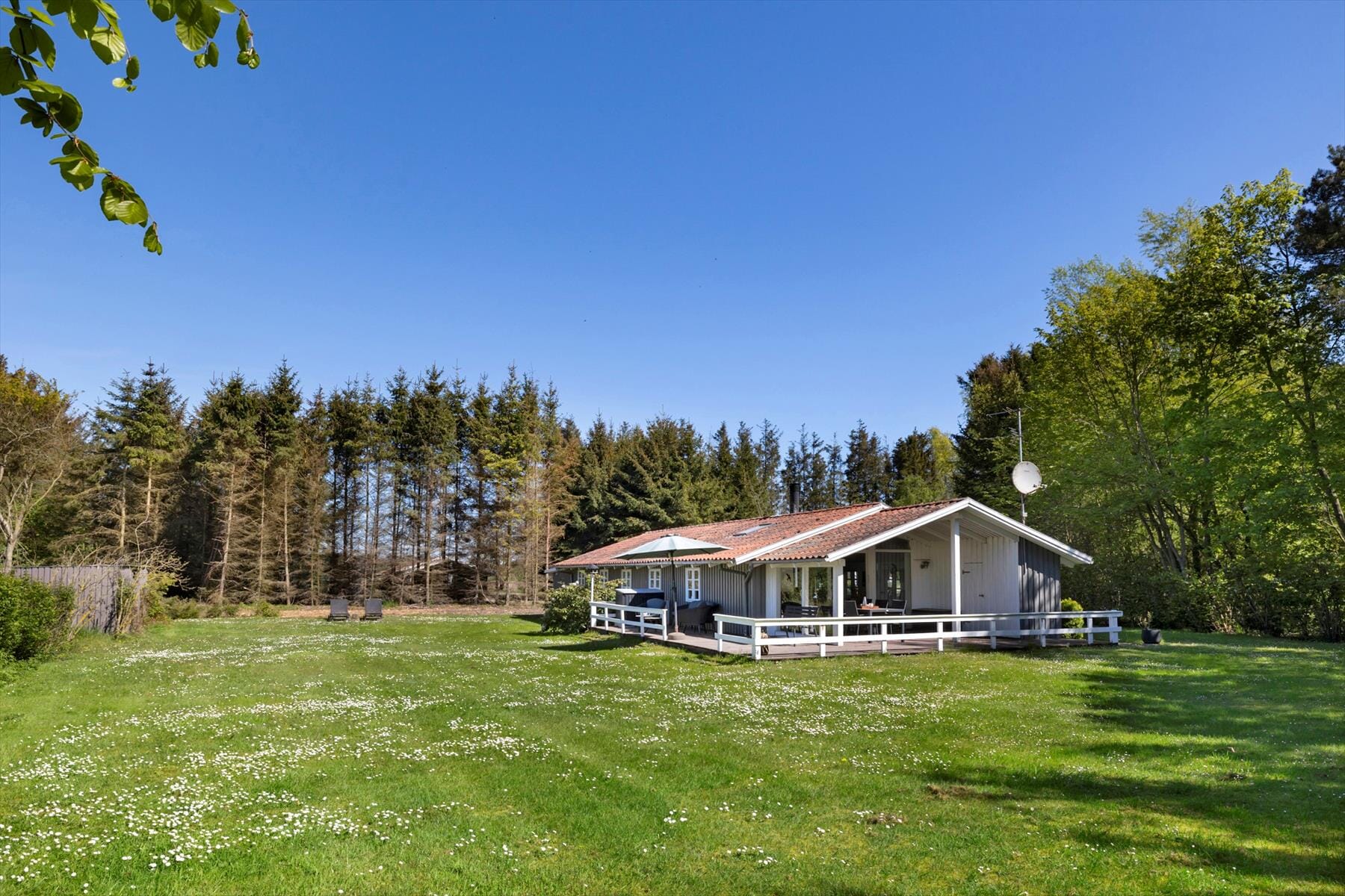 Das Ferienhaus verfügt über eine große Terrasse, auf der du die vielen Sonnenstunden des Tages genießen kannst. Ein Teil der Terrasse ist überdacht, sodass du draußen sitzen kannst, egal ob die Sonne von einem wolkenlosen Himmel scheint oder ob der Abendtau fällt. Mache es dir in den bequemen Gartenmöbeln mit einer Tasse Kaffee und einem guten Buch gemütlich, während du die Ruhe und das Zwitschern der Vögel im Hintergrund genießt. Wenn der Hunger sich meldet, kannst du den Grill anzünden und ein leckeres Abendessen unter freiem Himmel zubereiten. Dein Auto kann problemlos im Carport geparkt werden, wo auch eine Lademöglichkeit für Elektroautos vorhanden ist.