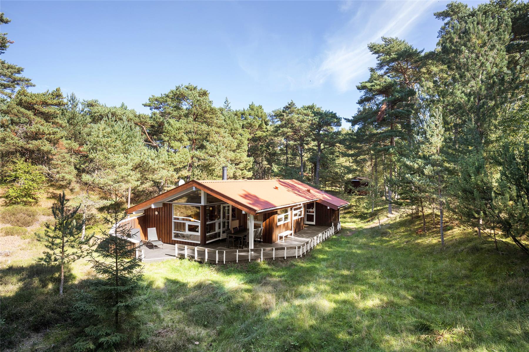 Das Haus liegt auf einem 2.500 m² großen Naturgrundstück, das von einer teils überdachten und möblierten Terrasse überblickt wird. Beginne den Tag hier mit einem leckeren Frühstück bevor Bornholm erkundet wird. Abends wird gegrillt und während das Essen auf dem Grill liegt, genießt du die einsetzende Abenddämmerung. Vom Carport ist das Haus 60 Meter entfernt.