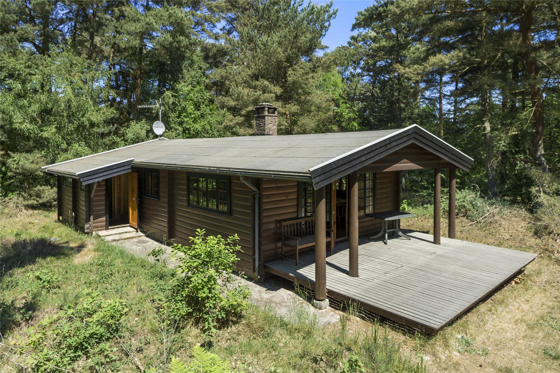 Dieses klassische, gepflegte Ferienhaus wurde komplett aus Holzbalken errichtet. Die Balken sind naturbelassen und verleihen dem Haus eine warme, gemütliche Stimmung. Der Essbereich ist in das Wohnzimmer integriert. Trotzdem ist das Platzangebot mehr als ausreichend. Vom Wohnbereich aus, gelangst du auch auf die Terrasse. Die Küche ist gut ausgestattet und vom Essbereich aus gut zugänglich. Die Schlafplätze verteilen sich auf drei Schlafräume. In einem der Räume befindet sich ein Doppelbett, im anderen ein Einzelbett sowie ein Etagenbett und im dritten ein weiteres Etagenbett. Das Badezimmer ist einfach und funktional eingerichtet.