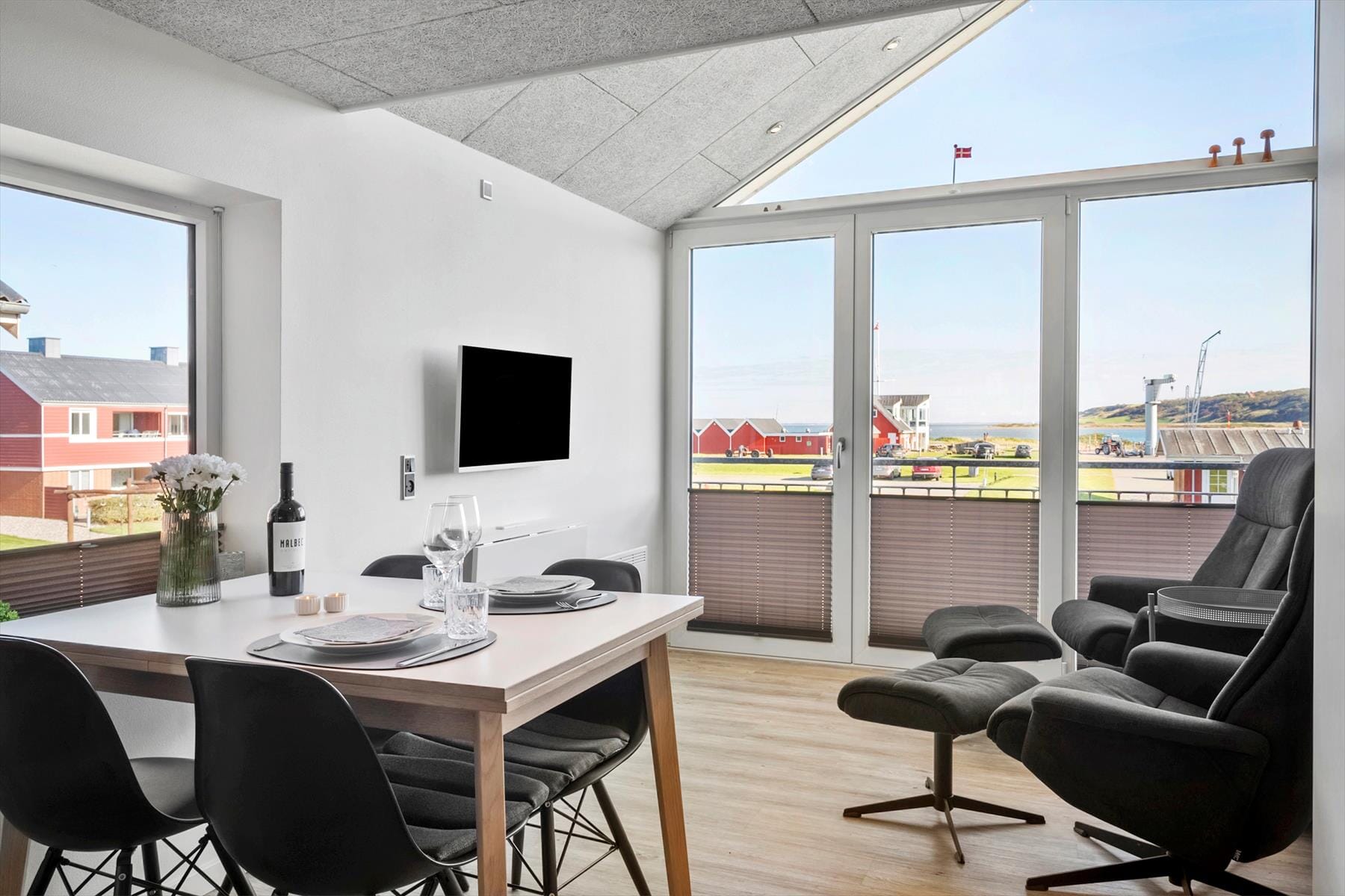 Haus-ID: G346Mit einem wunderschönen Blick auf den Lemvig Fjord und den gemütlichen Bootshafen liegt diese helle und stimmungsvolle Ferienwohnung in der Vinkelhagevej 46 – ein idealer Ort für zwei Personen, die sich eine erholsame Auszeit in der Nähe von Natur, Stadtleben und abwechslungsreichen Aktivitäten wünschen. Hier kannst du die Ruhe am Wasser genießen, den Morgenkaffee auf dem Balkon trinken und den Blick über den Fjord schweifen lassen, während die Segelboote leise im Hafen anlegen.