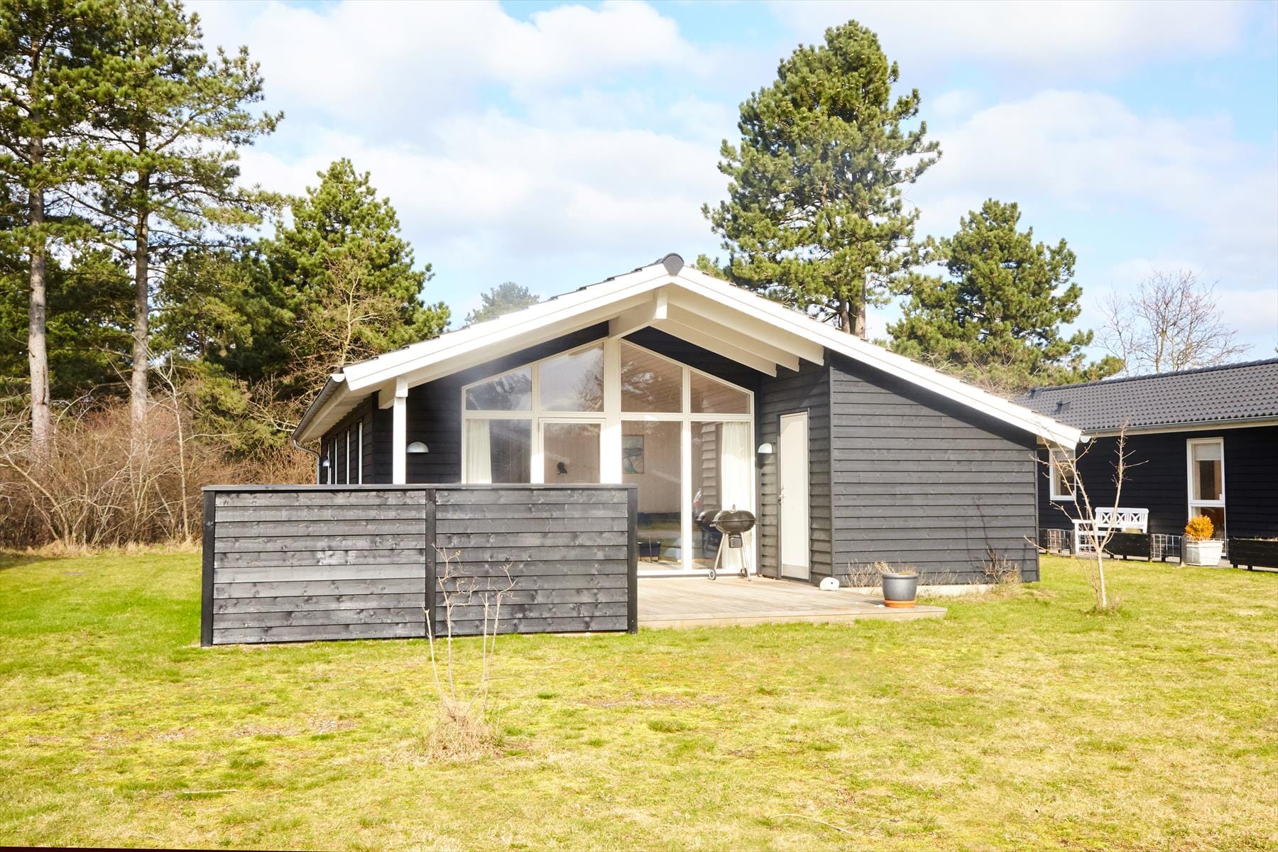 Attraktives Wohnzimmer mit einem guten Essplatz und besten Möglichkeiten für erholsame und gemütliche Stunden. An das Wohnzimmer grenzt eine gemütliche Schlafnische. Spielen Sie in geselliger Runde Karten, lesen Sie ein gutes Buch oder genießen Sie einen frischen Becher Kaffee. Während Sie sich erholen und entspannen werden Ihre Kinder vergnügt auf dem gemeinschaftlich nutzbaren Spielareal umhertollen und spielen. Das Haus beinhaltet drei schöne Schlafzimmer und eine schöne offene Küche. Hinzu gesellt sich ein Badezimmer mit einer Dusche. Das gesamte Objekt wirkt angenehm hell und einladend. Vom Wohnzimmer genießen Sie Zugang zu einer tollen Terrasse, die in einen offenen und einen überdachten Bereich unterteilt ist. Hier können Sie die Sonne genießen, wenn Sie es nicht bevorzugen sich am Strand in der Nähe hinzulegen.