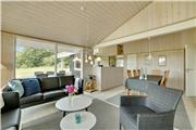 Geräumiges und gepflegtes Ferienhaus mit viel Platz im Wohnbereich für die ganze Familie. Das Wohnzimmer ist hell und einladend mit Blick auf Felder und die schöne Natur, die die Gegend umgibt. Hier findest du außerdem einen gemütlichen Kaminofen sowie einen Fernseher mit dänischen, deutschen, schwedischen und norwegischen Sendern – ideal, falls das Sommerwetter einmal nicht mitspielt.