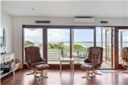 Vom gemütlichen Wohnzimmer haben Sie Zugang zur Terrasse und einen grandiosen Blick aufs Meer. Der Wohnbereich ist ausgestattet mit Kaminofen, bequemer Sitzecke und Esstisch und verbunden mit der offene Küche, durch die Sie direkten Zugang haben zur Terrasse auf der Westseite des Hauses.