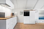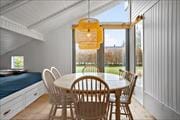 Das Ferienhaus für 6 Personen eignet sich hervorragend für Familien mit einem Hund. Von einer überdachten Holzterrasse gelangen Sie in den Eingangsbereich/Flur, der Sie in die Schlafzimmer, in das Badezimmer und in den Aufenthaltsraum führt. Letztgenannter setzt sich offen aus der schönen Küche und dem Wohn- und Essbereich zusammen. Der schöne Raum besticht mit weiß gestrichenen Holzwänden und Holzdecken, einer schönen Deckenhöhe und großen Fenstern, die einen ansprechenden Tageslichteinfall und einen Ausblick in den Garten gewähren.