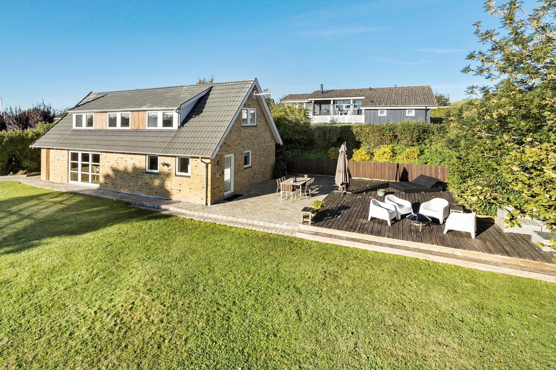 Das Ferienhaus hat zwei schöne Terrassen, wovon die eine teilweise überdacht ist, mit dazugehörigem Grill und Liegestühlen. Zum Haus gehört ein grosser Garten mit Platz für Ballspiele und andere Aktivitäten.