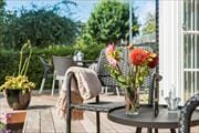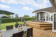 Vom Wohnzimmer und Essbereich gelangen Sie direkt auf eine wunderbare Holzterrasse, die sich um das ganze Haus zieht, sodass Sie die langen Sommerabende in vollen Zügen genießen können. Das Haus verfügt über einen großzügigen, einladenden Gemeinschaftsbereich, in dem die ganze Familie zusammenkommen kann, sowie über gemütliche Schlafzimmer, die einen ruhigen Rückzugsort bieten.