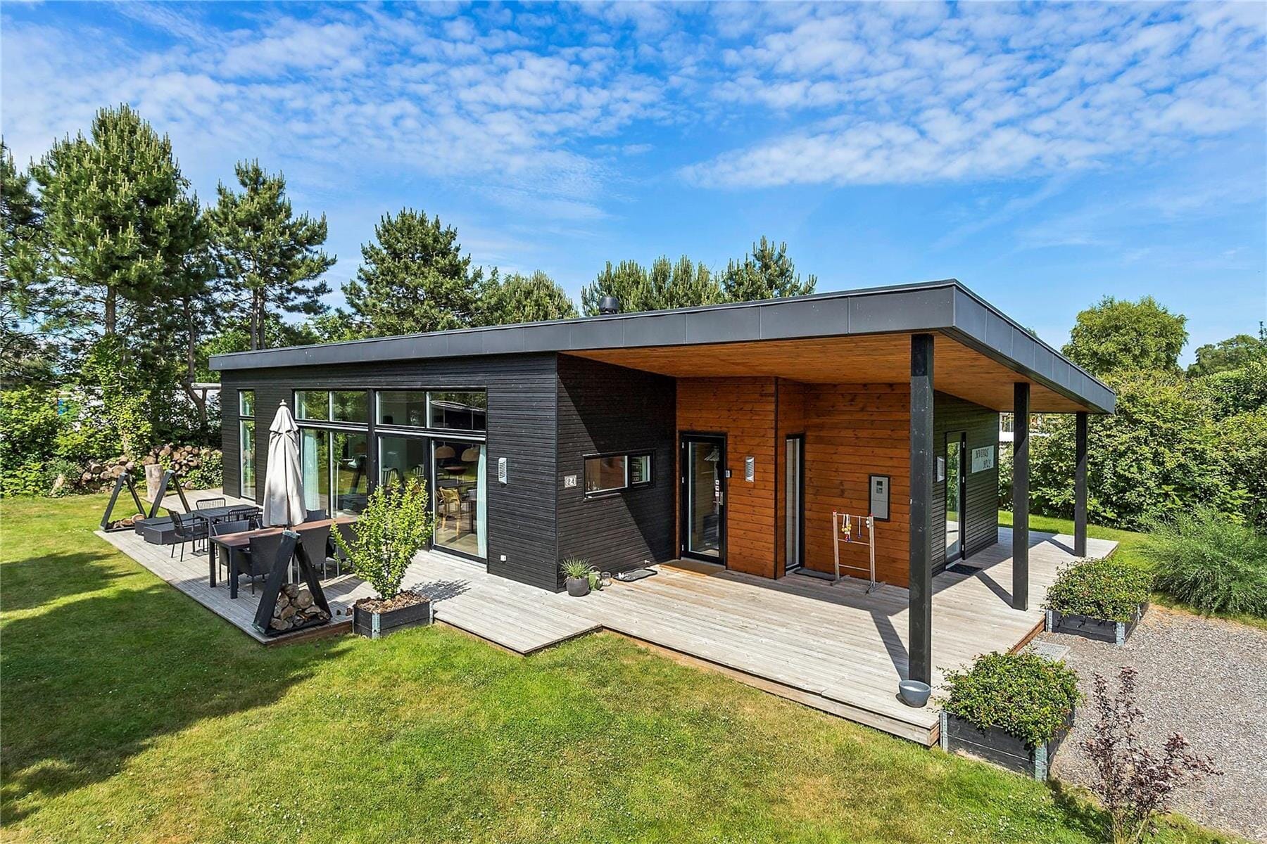 Das Haus ist mit einem Außen-Fischreinigungstisch anglerfreundlich ausgestattet. Draußen ist ebenfalls eine Dusche vorhanden, die an einem sonnigen Tag genutzt werden kann. Die Sonne kann tagsüber auf der Holzterrasse genossen werden, die das Haus umgibt. Für die Kinder gibt es Schaukeln, Sandkasten und ein Lagerfeuer.
